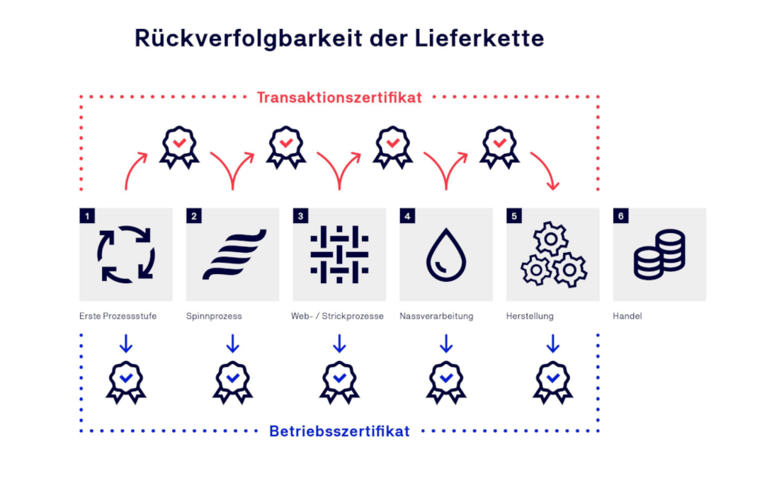 Durch die durchgängige und unabhängige Zertifizierung jedes Prozesses wird die Rückverfolgbarkeit gewährleistet. Angefangen von der Gewinnung der textilen Rohstoffe bis zum Endprodukt ist die Lieferkette durchgängig zertifiziert. Hierbei ist es für jedes involvierte Unternehmen verpflichtend, mit einem Betriebs – oder Scope-Zertifikat nachzuweisen, dass alle Kriterien eingehalten werden und GOTS Produkte konform produziert werden. Ein gültiges Scope Zertifikat sollte daher bei jedem Einkauf vom Lieferanten vorliegen.