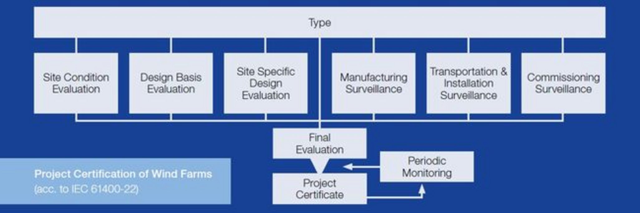 Mit dem Fokus auf kürzeste Zeitrahmen und schlankste Prozesse sind unsere Zertifizierungsdienstleistungen auf projektspezifische Bedürfnisse zugeschnitten und können auf optionale Aktivitäten wie unabhängige Inspektionen für Fundamententwürfe, Überwachung von Betrieb und Wartung sowie Änderungsmanagement und viele andere Dienstleistungen erweitert werden.