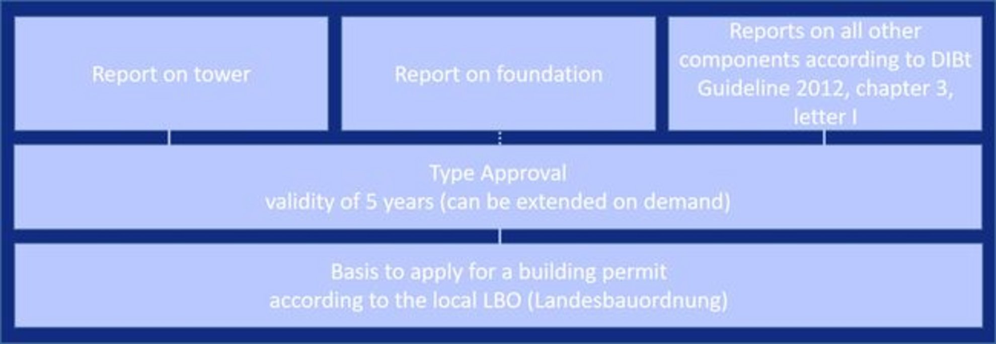 Seit 2004 hat TÜV NORD mehr als 1200 Berichte über Typenzulassungen („Typenprüfungen“) basierend auf der DIBt-Richtlinie für Windkraftanlagen ausgestellt. In jedem der 16 deutschen Bundesländer werden Windkraftanlagen als Gebäude behandelt, die eine Baugenehmigung gemäß der lokalen LBO („Landesbauordnung“ = lokale Bauvorschriften) erfordern. Die Typenzulassung ist ein Instrument, das durch die BauPrüfVO („Verordnung über bautechnische Prüfungen“) definiert ist und die erforderliche Einzelgenehmigung im Falle mehrerer Gebäude, die auf die gleiche Weise errichtet werden, ersetzt. Die Typenzulassung umfasst die statische Berechnung des Turms und – auf Wunsch – auch des Fundaments. Alle anderen Komponenten – wie Lastannahmen, Sicherheitssystem, Handbücher, Rotorblatt, Maschinenkomponenten, Gondelabdeckung, elektrische Ausrüstung und Blitzschutz – werden in Form einer GS („Gutachtliche Stellungnahme“ = Bewertungsbericht in deutscher Sprache) bewertet, die von einer Zertifizierungsstelle mit einer Benachrichtigung für Deutschland ausgestellt wird.